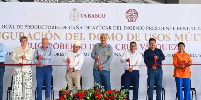 En compañía de Víctor Manuel Aldrete Tejeda, secretario general de la Unión Nacional de Productores de Caña de Azúcar, y Roberto de la Cruz Vázquez, presidente de la Unión Local de Productores de Caña de Azúcar del ingenio “Benito Juárez”, el mandatario estatal inauguró el nuevo domo de usos múltiples de la organización ubicada en el Poblado C-27, del municipio de Cárdenas.