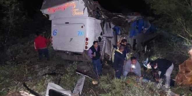 En el lugar se observa al pesado camión dentro de la maleza, y los cuerpos de los viajeros accidentados.