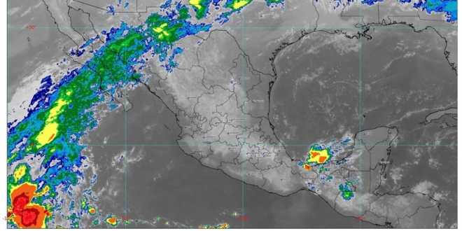 Hoy, la entrada de humedad generada por la corriente en chorro subtropical y un canal de baja presión sobre el sureste de México ocasionarán lluvias fuertes (de 25 a 50 milímetros [mm]) en Chihuahua y Sonora; chubascos (de 5 a 25 mm) en Baja California, Baja California Sur, Chiapas Jalisco, Oaxaca y Veracruz, y lluvias aisladas (de 0.1 a 5 mm) en Campeche, Colima, Durango, Estado de México, Guerrero, Michoacán, Nayarit, Puebla, Quintana Roo, Sinaloa y Tabasco. En Chiapas, Oaxaca y Veracruz se acompañarán de descargas eléctricas.