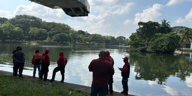 Elementos de Protección Civil realizan la búsqueda de una persona que presuntamente fue víctima del ataque de un cocodrilo en la Laguna de las Ilusiones.