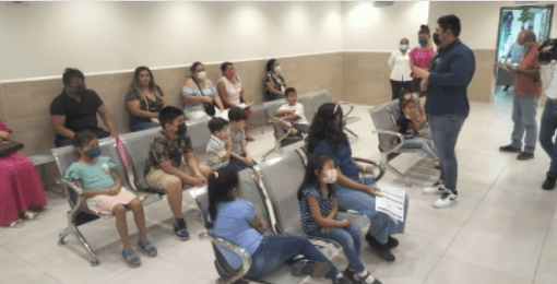 En punto de la 2 de la tarde, los tutores, ya se encontraban haciendo fila, para subir a la planta alta, del centro de salud “Dr. Maximiliano Dorantes”, para proteger a sus vástagos.