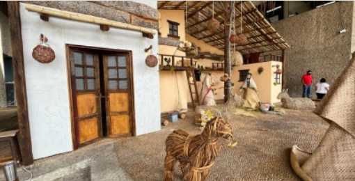 El belén del MUSEVI, representa a las Secretarías de Bienestar estatal y federal, Desarrollo Agropecuario, Forestal y Pesca (Sedafop) y la Coordinación General de Asuntos Jurídicos y está elaborado de manera sustentable, con materiales orgánicos y reciclados, como la hoja de joloche, el bambú y manta, en homenaje a las mujeres y hombres del campo y artesanos de Tabasco.