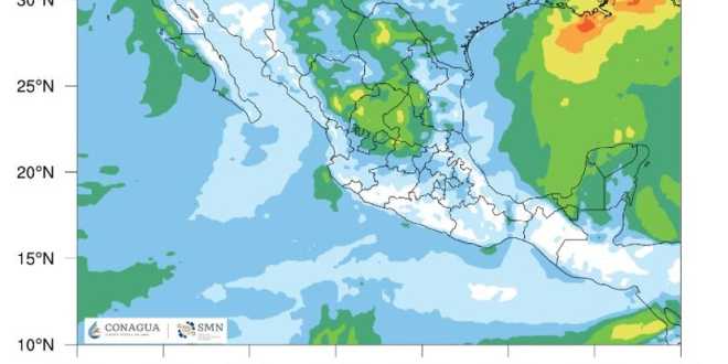 Hoy, en el noroeste y norte de México, la interacción de una vaguada polar y la corriente en chorro polar ocasionarán ambiente de frío a muy frío con heladas durante la mañana en la Mesa del Norte y la Mesa Central, ambiente gélido en zonas montañosas de Chihuahua y Durango, así como condiciones para la caída de aguanieve o nieve durante la mañana en sierras de Chihuahua, Coahuila, Durango, Sonora y Zacatecas.