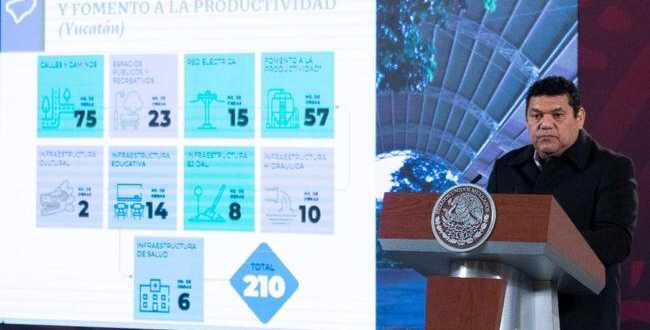 En Yucatán, dijo, son 210 las obras sociales como calles y caminos, espacios públicos y recreativos, electrificación y fomento a la productividad, mientras que en Quintana Roo son 18 acciones entre calles y caminos, infraestructura ejidal y red eléctrica.