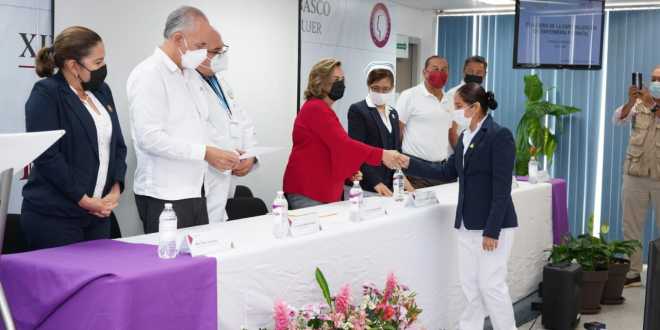La secretaria de Salud, Silvia Guillermina Roldán Fernández, entregó este lunes reconocimientos a 13 profesionales egresadas de la Especialización de Enfermería Perinatal, impartida en el Hospital Regional de Alta Especialidad de la Mujer, bajo el auspicio del Gobierno del Estado y la Escuela Nacional de Enfermería Obstétrica (ENEO) de la Universidad Nacional Autónoma de México (UNAM).