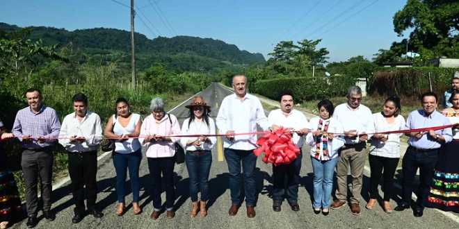 Merino Campos cerró su gira de trabajo por villa Benito Juárez, con la inauguración de caminos rehabilitados con pavimento asfáltico de las rancherías Cacahuatalillo y Simón Sarlat, obras en las que se invirtieron de forma convenida Gobierno estatal-Ayuntamiento más de 9.7 millones de pesos.
