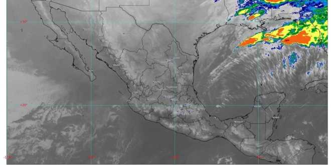 Una circulación anticiclónica en niveles medios de la atmósfera mantendrá condiciones estables y temperaturas calurosas en el occidente, centro y sur del territorio nacional, por lo que se prevén valores máximos de 35 a 40 grados Celsius en zonas de Campeche, Chiapas, Colima, Guerrero, Jalisco, Michoacán, Oaxaca y Yucatán, y de 30 a 35 grados Celsius en áreas de Morelos, Nayarit, Puebla, Quintana Roo, Tabasco y Veracruz.
