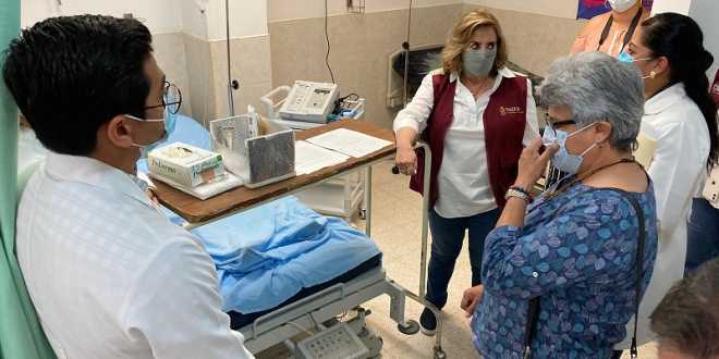Durante el recorrido, la funcionaria estatal conversó con el personal de dicha unidad médica sobre la atención que brindan diariamente a la población y los exhortó a seguir redoblando el esfuerzo para incrementar las coberturas de vacunación, reforzar el seguimiento de las pacientes embarazadas, como de los pacientes con enfermedades crónicas.