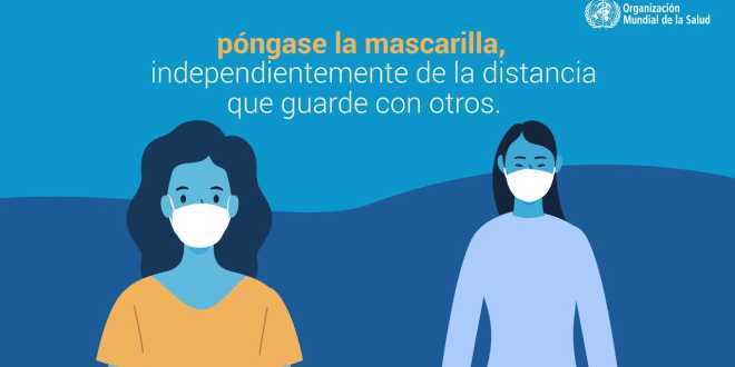 Si la COVID-19 se propaga en su comunidad, cuídese adoptando algunas precauciones sencillas, por ejemplo, manteniendo el distanciamiento físico, llevando mascarilla, ventilando bien las habitaciones, evitando las aglomeraciones, lavándose las manos y cubriéndose la boca y la nariz con el codo flexionado o con un pañuelo al toser. Consulte las recomendaciones de su lugar de residencia y trabajo. Todas las medidas son necesarias.