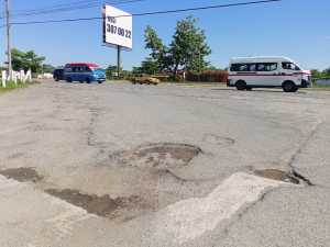 La mayoría de las calles están destrozadas por el paso de unidades de carga pesada.