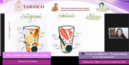 Con la recomendación de comer bien y saludablemente, “porque nuestro cuerpo nos los agradecerá”, este miércoles el Instituto Estatal de las Mujeres (IEM) presentó el círculo de reflexión “El autocuidado en la alimentación”, a cargo de la nutrióloga clínica, Vanessa Fabiola Sotelo Turbán.