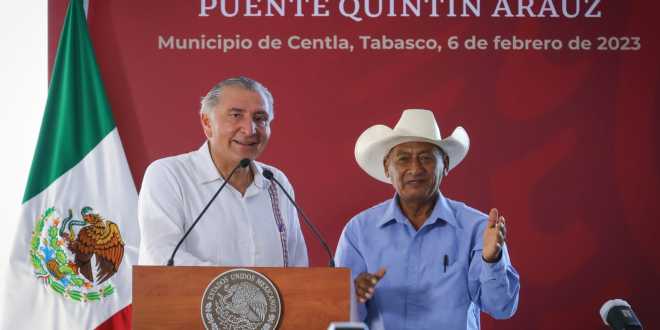 Al inaugurar el nuevo puente carretero del poblado Quintín Arauz, una estructura que es la más grande del estado en su tipo y contribuye a dejar atrás el rezago ancestral que durante siglos vivieron los índigenas chontales asentados en la ribera del Usumacinta, el secretario de Gobernación (Segob), Adán Augusto López Hernández, aseveró que la Cuarta Transfromación que lidera el presidente Andrés Manuel López Obrador sabe cumplir a los más desposeídos.