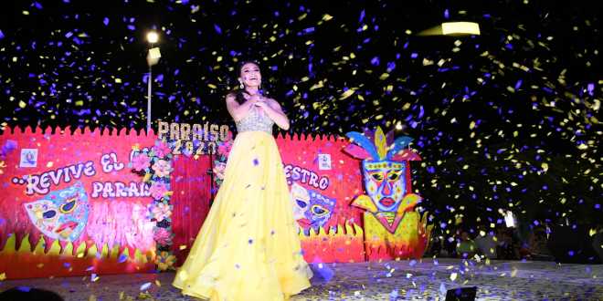 Frente a sus padres, Arturo Pérez y Patricia Mendoza; la representante de Paraíso, Diana Laura Pérez Mendoza hizo uso de la pasarela para recibir el respaldo del público asistente que bajo una lluvia de aplausos y porras demostraron su cariño a quien portará en su pecho la banda bordada con el nombre de Paraíso.