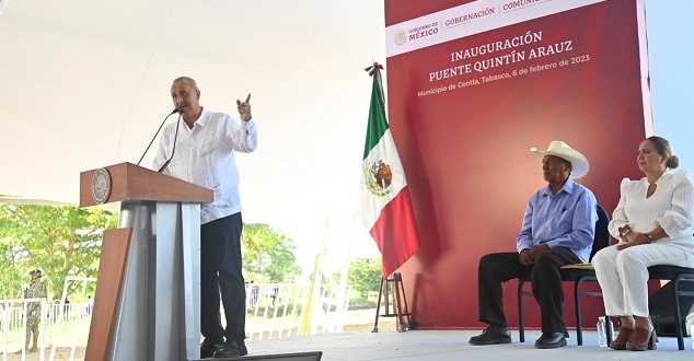 Por su parte, la presidenta municipal de Centla, Lluvia Salas López, destacó que el pueblo de Centla está muy a gusto y agradecido con el presidente Andrés Manuel López Obrador, por hacer realidad la transformación, el desarrollo y el bienestar de las familias del municipio, y por la construcción de este histórico puente de Quintín Arauz.