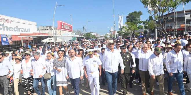 Escoltado por miles de ciudadanos, autoridades de los tres poderes del estado, funcionarios de los tres niveles de gobierno, líderes sociales, dirigentes empresariales, e integrantes de las fuerzas armadas, el gobernador Carlos Manuel Merino Campos encabezó este jueves en Tenosique el 110 aniversario de la emblemática Marcha de la Lealtad.
