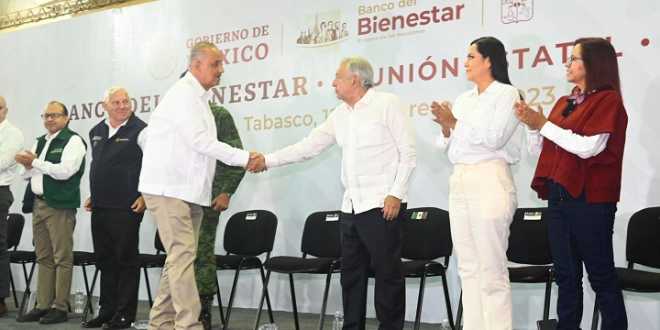 El mandatario estatal recalcó que tanto en México como en Tabasco hay gobiernos humanistas, honestos y de lealtad ciega con el pueblo; ‘actuamos con congruencia y apegados a derecho; por ese motivo contamos con una herramienta clave para el desarrollo económico y social de nuestra nación, como lo es el Banco del Bienestar’.