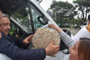 A su llegada al Aeropuerto Internacional de Villahermosa ‘Carlos Rovirosa Pérez’, el mandatario fue saludado por decenas de sus paisanos que se acercaron al vehículo donde viajaba para hacerle peticiones; pero además le reglaron una bolsa con totopostes y un estudiante le agradeció su beca Benito Juárez, porque gracias a ella pudo terminar sus estudios. De hecho, le pidió al presidente Obrador que le firmara sobre su fotografía de graduación.