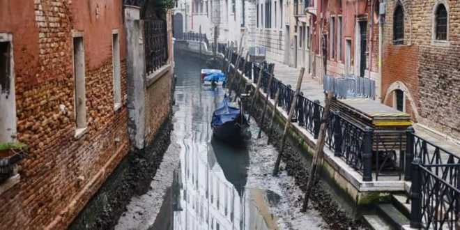 La prolongada marea baja que se está produciendo en la delicada Venecia está causando estos días problemas, pues resulta imposible navegar por algunos canales y muchas de las góndolas están varadas en el fango, en coincidencia con uno de sus periodos más turísticos por la celebración del famoso carnaval.