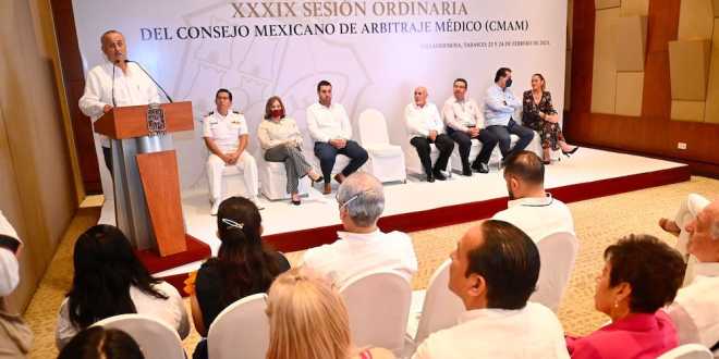 Al presidir la trigésima novena sesión ordinaria del Consejo Mexicano de Arbitraje Médico (CMAM), que por primera vez se reúne en Tabasco, el gobernador Carlos Manuel Merino Campos instó a construir mecanismos alternativos que permitan garantizar el derecho de la población a una salud de calidad y con calidez, y en caso de quejas en el servicio, resolverlas sin injusticias.