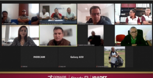 Los directores de deporte de los estados de Chiapas, Campeche, Quintana Roo y Yucatán estuvieron conectados a la sesión; así como el director de Alto Rendimiento del INJUDET, Guadalupe Villarreal, junto al equipo técnico de la Dirección de Deporte de este instituto.