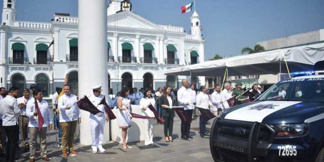 La funcionaria federal, junto con el gobernador Carlos Manuel Merino Campos, dio el banderazo de salida de patrullas y bicipatrullas e hizo la entrega de equipo tecnológico a los cuerpos de seguridad, mediante una inversión de 45.6 millones proveniente del Fondo de Aportaciones para la Seguridad Pública (FASP), para fortalecer ese rubo en Tabasco.