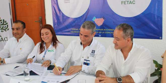 En la firma, participaron Paulina Velázquez directora de la Fetac, Román Esteban David González, consejero y presidente del comité de recaudación de la Fetac, y Gabriel Santandreu Ramírez, presidente de Coldwell Banker- Aztoria Tabasco y Soc, quienes se comprometieron a trabajar de la mano con acciones encaminadas al apoyo social.