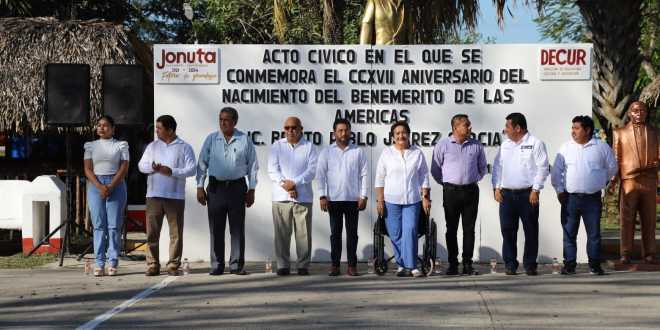 El Gobierno de Jonuta y estudiantes de todas las instituciones educativas del municipio, se reunieron para conmemorar el 217 aniversario del natalicio de Benito Juárez.