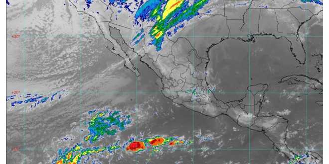 En contraste, un sistema de alta presión –anticiclónico- posicionado en niveles medios de la atmósfera, originará ambiente de cálido a caluroso con baja probabilidad de lluvias en el occidente y sur del territorio nacional. Se pronostican temperaturas máximas de 40 a 45 grados Celsius en Guerrero, Michoacán y Morelos; de 35 a 40 grados Celsius en Campeche, Chiapas, Coahuila, Colima, Jalisco, Nayarit, Nuevo León, Oaxaca, suroeste de Puebla, Quintana Roo, San Luis Potosí, Sinaloa, Tabasco, Tamaulipas, Veracruz y Yucatán, y de 30 a 35 grados Celsius en Aguascalientes Chihuahua, Durango, suroeste del Estado de México, Guanajuato, Hidalgo, Querétaro y Zacatecas.