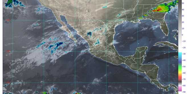 Una circulación anticiclónica en niveles medios de la atmósfera mantendrá el ambiente de caluroso a muy caluroso en gran parte de la República Mexicana, con temperaturas máximas de 40 a 45 grados Celsius en Campeche, Colima, Guerrero, Jalisco, Michoacán, Morelos, Nayarit, Nuevo León, Oaxaca, San Luis Potosí, Tamaulipas, Veracruz y Yucatán.