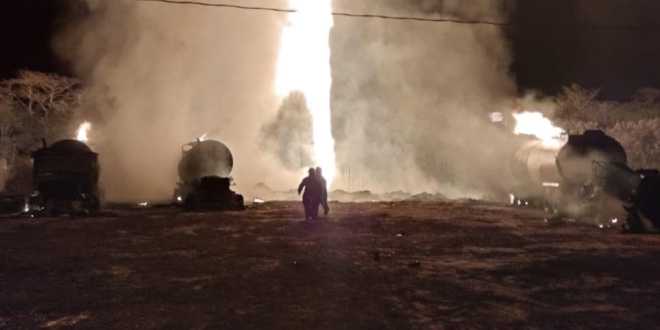Durante esta madrugada, equipo contraincendios del Centro Regional Sabana, atendió reporte de explosión por toma clandestina en el Ejido Cárdenas del municipio de Cárdenas.