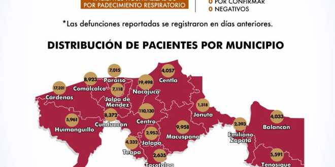 Informó que en lo que va de la pandemia el número de casos confirmados en Tabasco se elevó a 221 mil 508, en tanto que la cifra de fallecimientos creció a 6 mil 394.