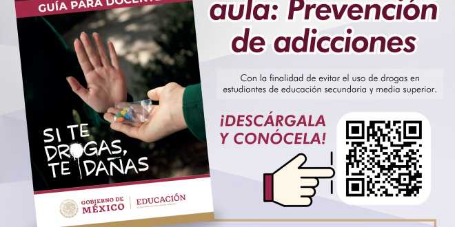 La Secretaría de Educación de Tabasco, invita a descargar la guía y conocerla, a través de la página https:estrategiaenelaula.sep.gob.mx, donde se detallan temas como el Fentanilo, Cannabis, Metanfetamina, tabaco, alcohol, y otra clase de estupefacientes.