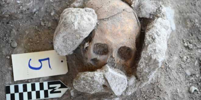 “De ese número de entierros (13) se contabilizaron ocho individuos que debieron ser decapitados y partes de sus cuerpos desmembradas y colocadas separadas, para consagrar el templo,” explica el especialista.