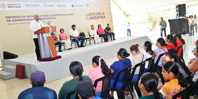 “Si algo caracteriza a los gobiernos emanados de la Cuarta Transformación es la visión humanista y reconciliadora con el porvenir de las futuras generaciones”, remarcó al precisar que la entrega de medios de pago a comités escolares de planteles de 24 comunidades del municipio de Centro forma parte de una primera etapa, que cerrará mañana jueves con una meta cumplida de 1 mil 180 escuelas atendidas en todo el estado.