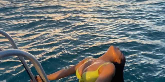 La actriz y productora mexicana mostró su esbelta figura en una serie de fotografías en traje de baño disfrutando del mar.