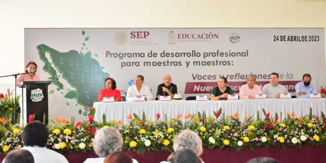 Con la participación de más de 400 maestras y maestros, la secretaria de Educación, Egla Cornelio Landeros, inauguró, el Foro «Voces y Reflexión de la Nueva escuela Mexicana», efectuado en el municipio de Jalpa de Méndez.