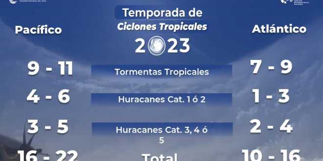 Informó que, a partir del mes de mayo podría presentarse el fenómeno climatológico de El Niño, el cual se espera que predomine durante todo 2023, prolongándose las lluvias hasta diciembre. “A consecuencia de ello, se espera mayor actividad ciclónica en el Pacífico y menor en el Atlántico, debido a que las temperaturas del mar estarán por arriba de los promedios”.