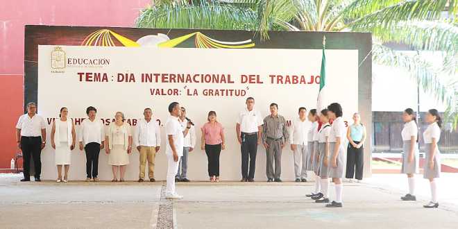 Como parte de las acciones encaminadas a promover el amor por la patria y nuestros símbolos patrios, la SETAB llevó a cabo el acto cívico del mes de mayo, el cual fue encabezado, en representación de la secretaria de Educación, Egla Cornelio Landero, por el subsecretario de Educación Básica, Santana Magaña Izquierdo.