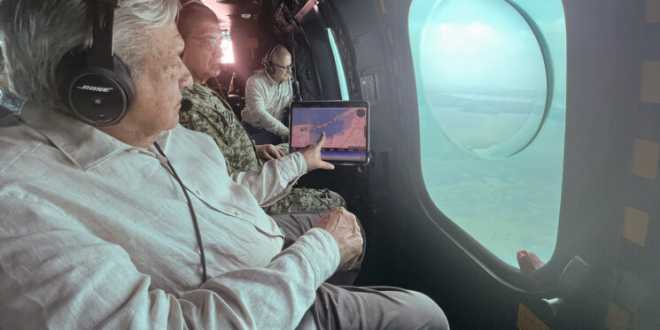 En la publicación, el mandatario compartió una foto del sobrevuelo que realizó atravesando la Laguna de Términos en Campeche.