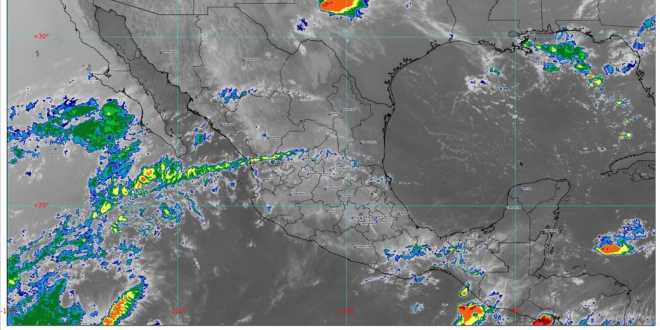 En el transcurso del día continuará el ambiente de caluroso a muy caluroso en los estados del litoral del Pacífico mexicano, la Península de Yucatán y del oriente y sureste de México, por lo que se pronostican temperaturas máximas de 40 a 45 grados Celsius en Campeche, Colima, Guerrero, Jalisco, Michoacán, Nayarit, Sinaloa, y Yucatán; de 35 a 40 grados en Baja California, Baja California Sur, Chiapas, Chihuahua, Coahuila, Durango, Nuevo León, Oaxaca, Quintana Roo, San Luis Potosí, Sonora, Tabasco, Tamaulipas, y Veracruz, y de 30 a 35 grados Celsius en Aguascalientes, Guanajuato, Hidalgo, Morelos, Querétaro, Zacatecas, y el suroeste del Estado de México y de Puebla.