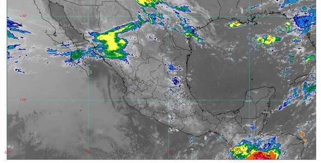 Las condiciones meteorológicas para el Pacífico Sur serán de cielo de medio nublado a nublado con bancos de niebla matutinos en sierras de la región, ambiente de fresco a templado por la mañana, caluroso a muy caluroso hacia la tarde, descargas eléctricas y posible caída de granizo en zonas con lluvia y viento de dirección variable de 10 a 20 km/h, con rachas de hasta 40 km/h.