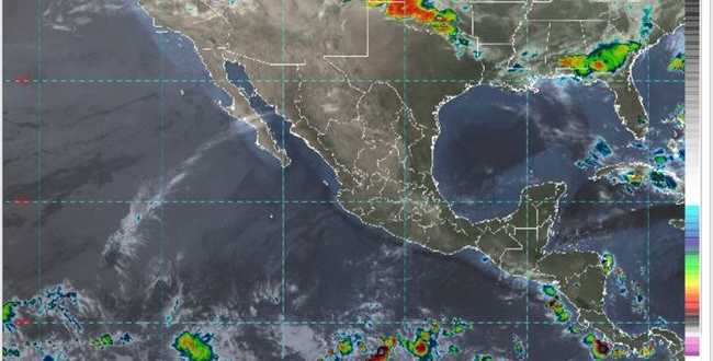 En el Pacífico Sur se prevé cielo medio nublado con ambiente templado durante la mañana y niebla en zonas serranas de la región; cielo nublado y ambiente muy caluroso por la tarde, descargas eléctricas y condiciones para caída de granizo en zonas con lluvia, además de viento de dirección variable de 10 a 25 km/h con rachas de hasta 45 km/h.