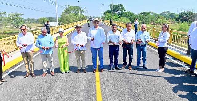 En medio de una jornada dominada por el intenso calor, el gobernador inició su recorrido por la geografía jalapaneca por el poblado “Francisco J. Santamaría”, donde reinauguró el Puente La Sierra, ubicado sobre el camino Playas del Rosario-Oxolotán y el cual fue rehabilitado por la Junta Estatal de Caminos (JEC) con una inversión superior a 25.4 millones de pesos para poner fin al problema de tránsito que existía en la zona.