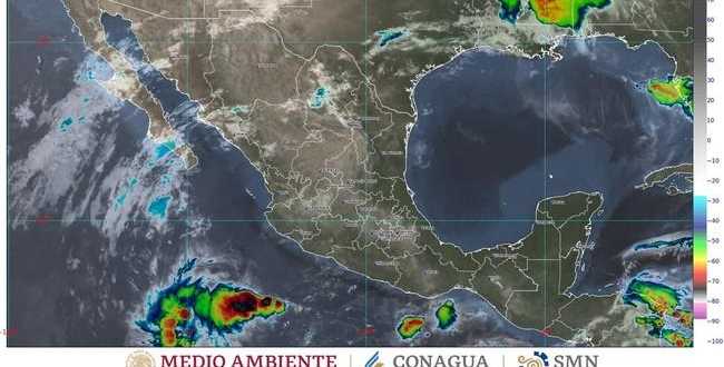 Para el Pacífico Sur se pronostica cielo de medio nublado a nublado durante el día, con lluvias puntuales muy fuertes y descargas eléctricas en Chiapas y Oaxaca, así como chubascos en Guerrero. Durante la mañana, se espera ambiente cálido y en la tarde, de muy caluroso a extremadamente caluroso en costas, así como viento de dirección variable de 10 a 25 km/h con rachas de 40 a 60 km/h y posibles tolvaneras en Chiapas y Oaxaca.
