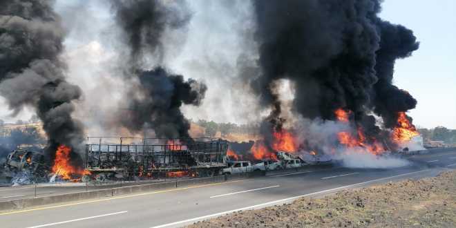 La tarde de este miércoles 21 de junio, Protección Civil de Jalisco reportó un incendio, debido a un choque múltiple de autos en la autopista Zapotlanejo – Lagos de Moreno, a la altura del kilómetro 44. El tráfico se detuvo en dirección a San Juan de los Lagos, Jalisco.