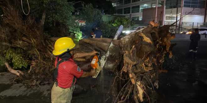 Personal de Bomberos y Centros Regionales, del Instituto de Protección Civil del Estado de Tabasco, atendieron de manera oportuna, la demanda ciudadana, ante los incidentes presentados por fuertes vientos y precipitaciones, la noche de este 25 de junio.
