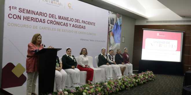 Al inaugurar el Primer Seminario del Manejo del Paciente con Heridas Crónicas y Agudas, la secretaria de Salud, Silvia Roldán Fernández, destacó que con la apertura paulatina de las Clínicas de Heridas, que ahora suman 19 en la entidad, se ha brindado la posibilidad de que cada vez más pacientes que sufren de lesiones graves tengan acceso a una atención especializada y no pierdan alguna extremidad por necrosis.