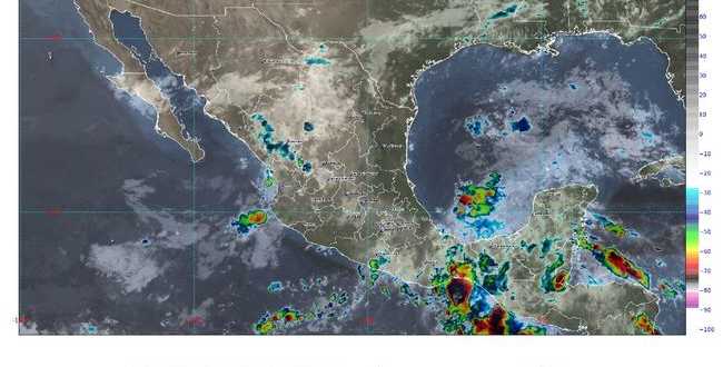 En la Península de Yucatán se prevé ambiente de templado a cálido y cielo medio nublado por la mañana; ambiente vespertino caluroso con cielo nublado, descargas eléctricas en zonas de lluvia y viento del este de 10 a 25 km/h con rachas de 40 a 60 km/h.