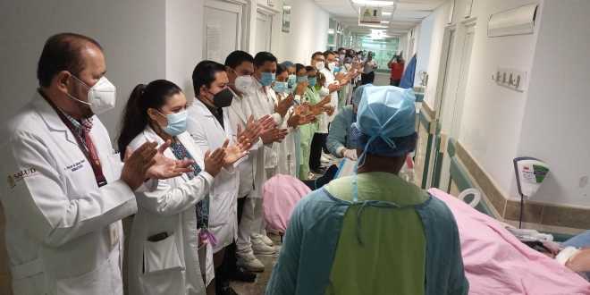 Personal médico y familiares procedieron a realizar un homenaje al donante durante el recorrido del cuerpo al área de quirófano, donde un equipo especializado llevó a cabo la procuración multiorgánica de hígado y corneas.