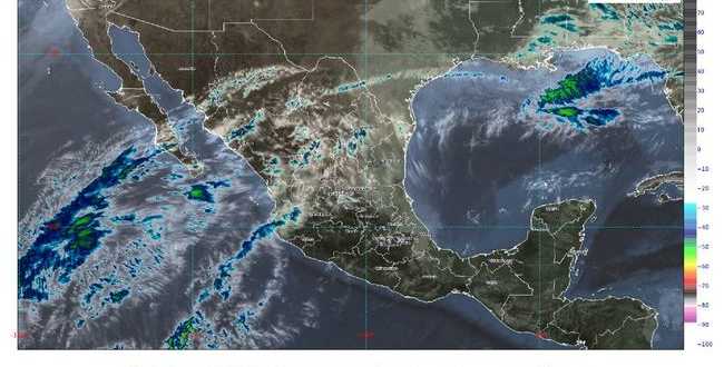 Para el Pacífico Norte el pronóstico es de cielo medio nublado y ambiente cálido por la mañana, caluroso con cielo nublado durante la tarde, descargas eléctricas y caída de granizo en sitios con lluvia. Se espera viento del suroeste de 15 a 30 km/h, en la región, con rachas de 40 a 60 km/h y posibles tolvaneras en Sonora.